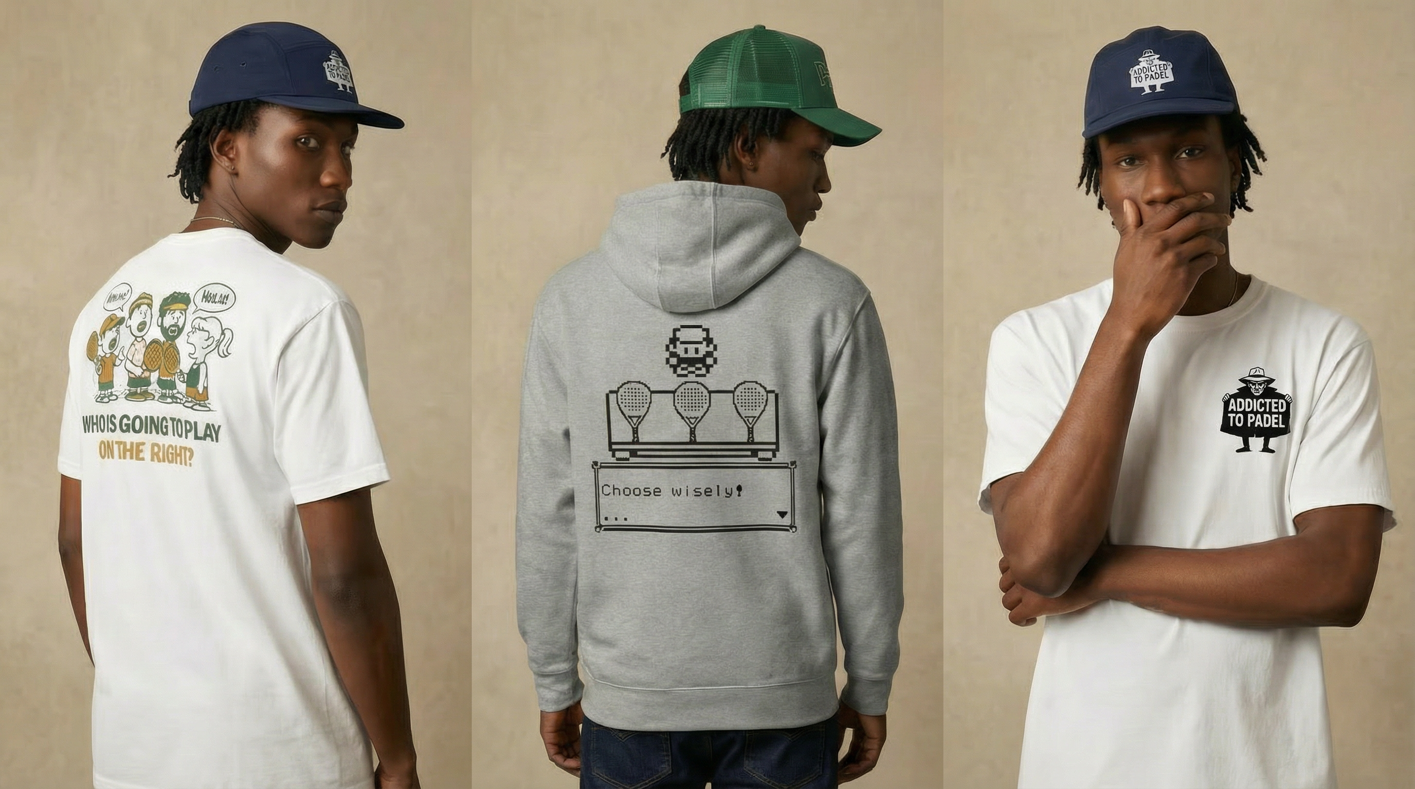 Clean basics for everyday wear, paired with illustrated pieces pulled from padel culture.